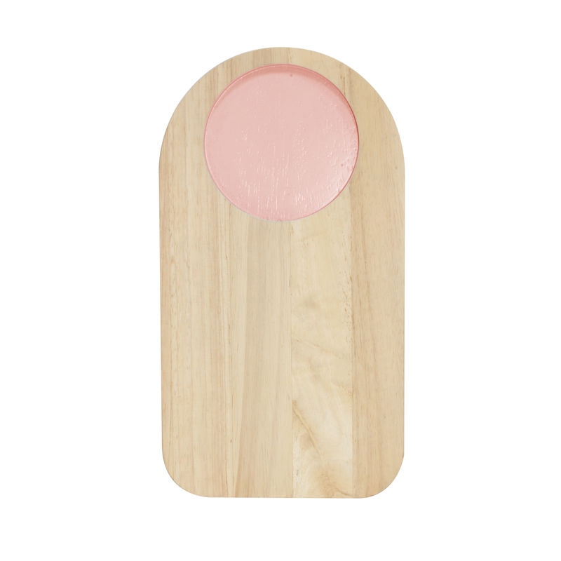 De presenteerbladen van Eco Design hebben een natuurlijke kleur en een cirkel aan de bovenkant. Het blad wordt gemaakt van duurzaam rubberhout. Afmeting 15x27cm. Kleur Roze.