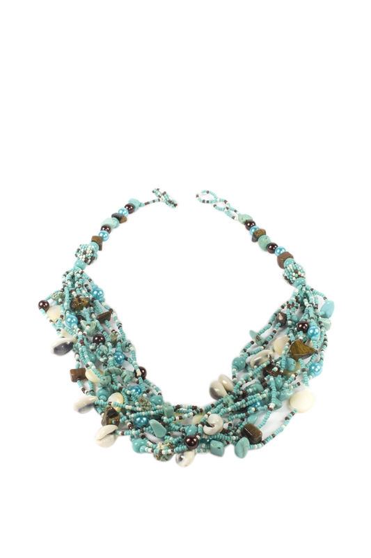 Ibiza stijl, zomerse ketting, handgemaakt van recycled glas en schelpjes. Verstelbaar.